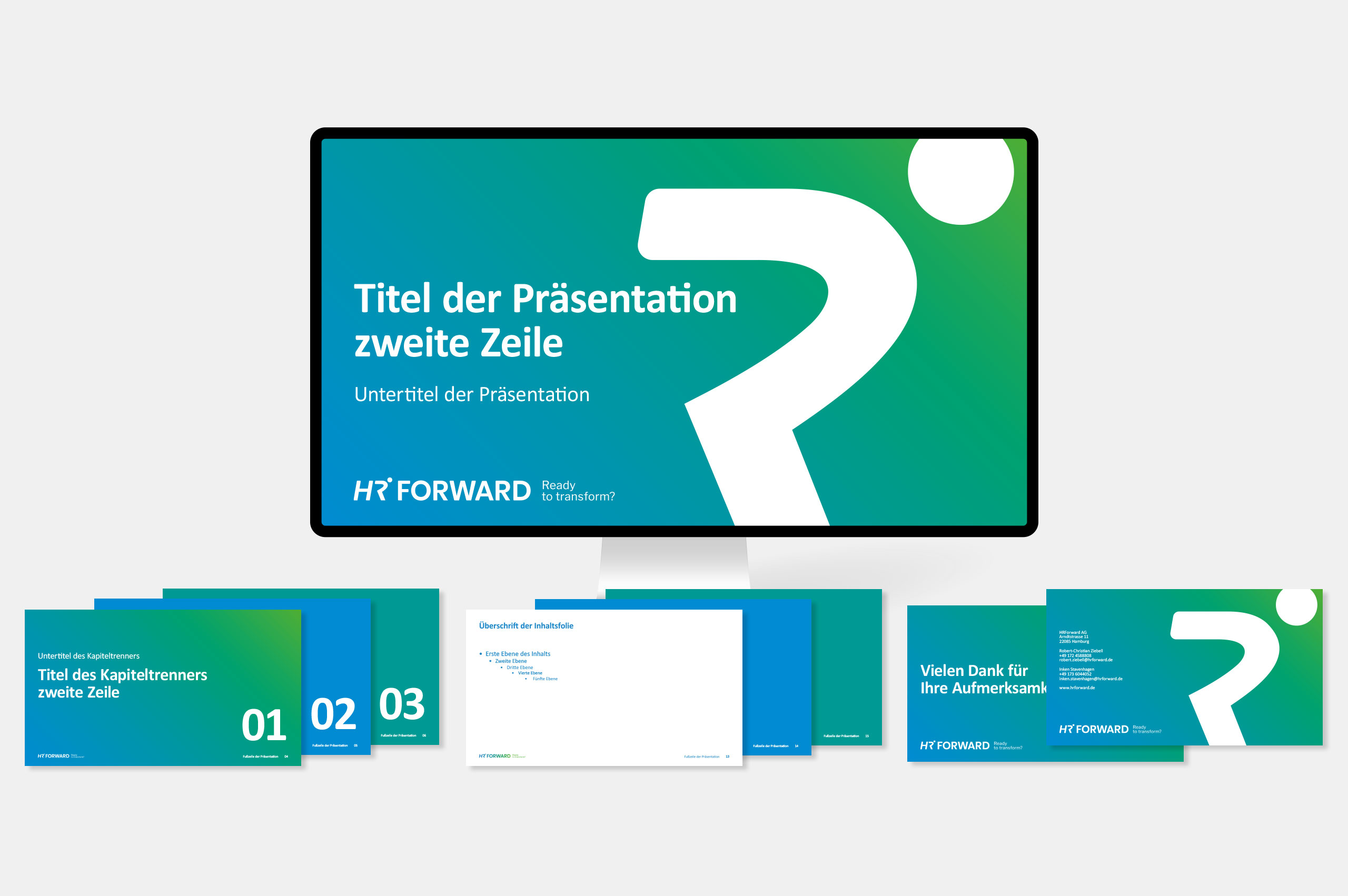 HRForward ist ein Beratungsunternehmen für Human-Resources-Abteilungen mit Schwerpunkt auf digitaler Transformation. Im Rahmen des neuen Markenauftritts wurden Logo, Corporate Design, Geschäftsausstattung und ein PPT-Template neuentwickelt – klar, strukturiert und digital orientiert. Das Webdesign greift diese Linie auf und übersetzt sie in einen modernen, professionellen Auftritt.