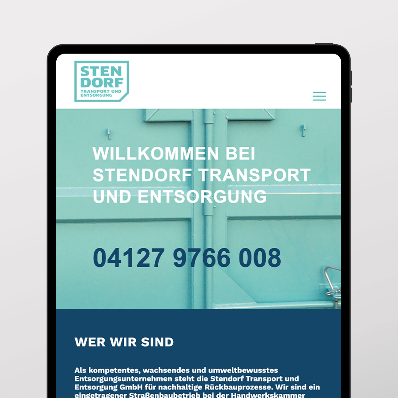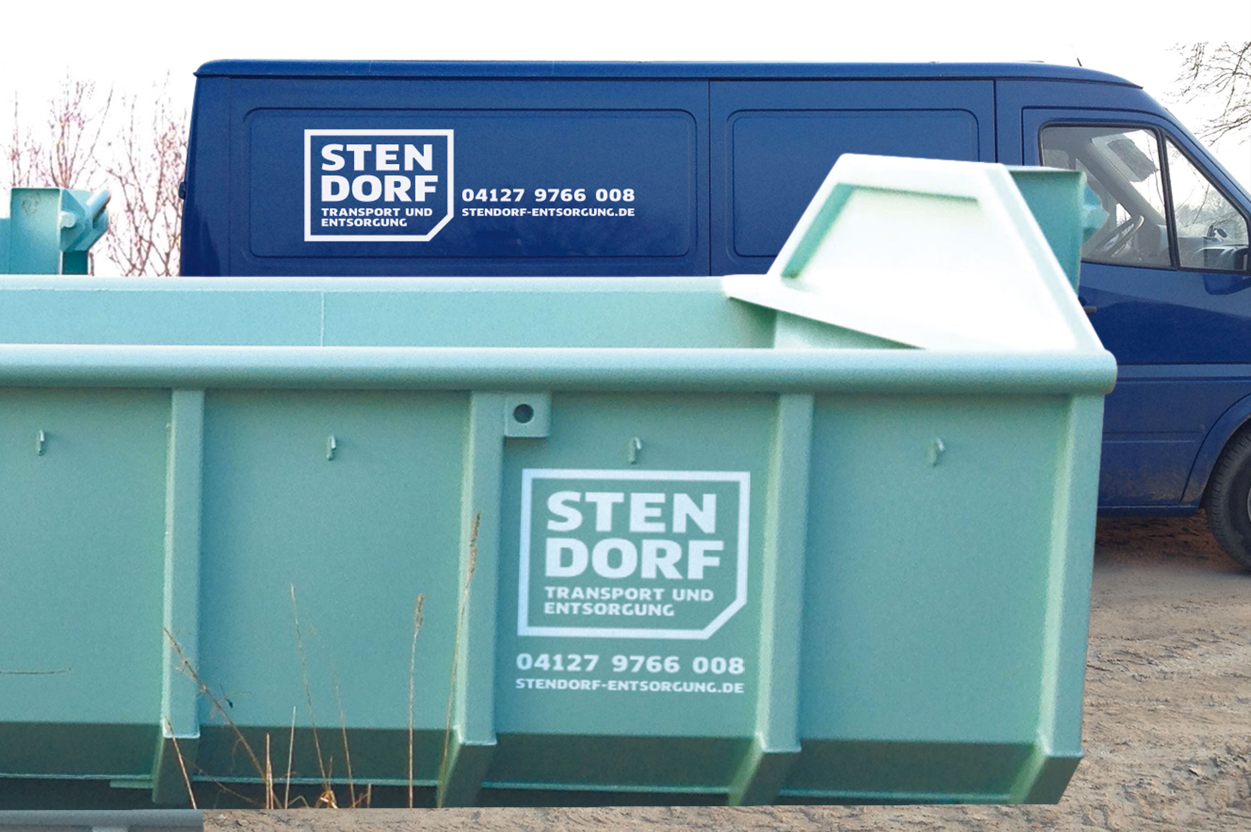Es wird bewegt, was bewegt werden muss: von Abriss und Entkernen bis zur Bereitstellung von Containern mit umweltbewusster Entsorgung. Die Firma Stendorf kümmert sich um Transporte, Beschaffung und Lieferung von Schüttgütern und Recyclingmaterialien wie Sande, Böden und Natursteine – schnell, sauber und zuverlässig. Ich durfte mich darum kümmern, dass sich all dies in einem neuen Logo, Visitenkarten, Fahrzeugbeschriftung und Webdesign widerspiegelt.